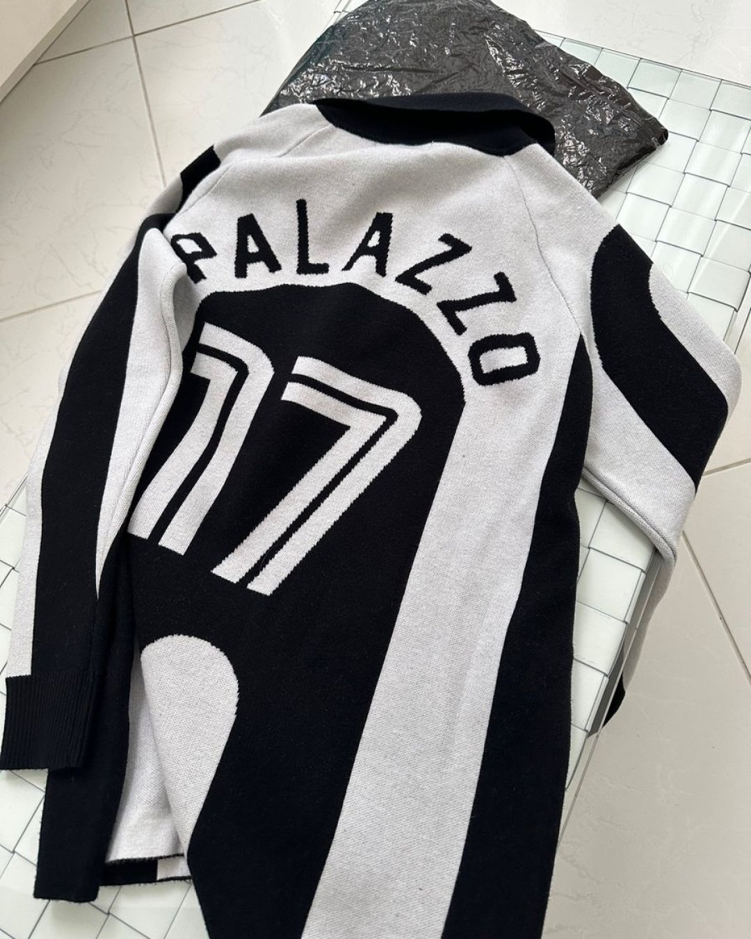 Crafted from high-quality knit fabric, it provides a comfortable and cozy fit while maintaining a sleek silhouette. Whether you're layering it over a tee or wearing it solo, this knit effortlessly blends luxury with urban edge, making it a must-have for any fashion-forward wardrobe. Perfect for adding a touch of high-fashion flair to your everyday outfits.