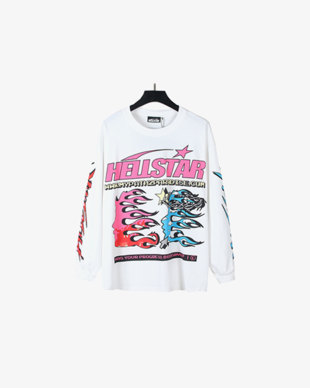 Ideal for fans of streetwear and 90s nostalgia, the Path To Paradise Hellstar 1996 Long Sleeves T-Shirt combines attitude with comfort, making it a go-to for standout casual outfits.