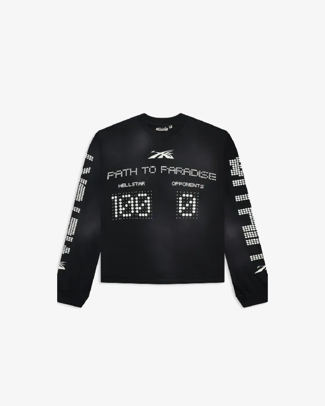 The Path to Paradise Hellstar Scoreboard Long Sleeves T-Shirt is a bold statement piece that blends streetwear aesthetics with dark, avant-garde elements. Featuring oversized, relaxed-fit styling, this T-shirt showcases the Hellstar Scoreboard graphic across the front and back, adding an edgy and rebellious vibe.