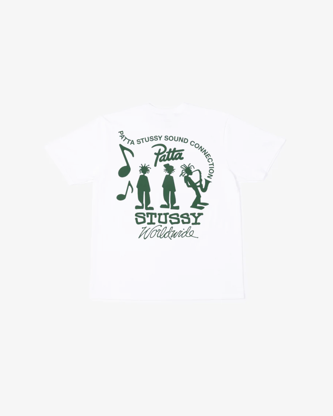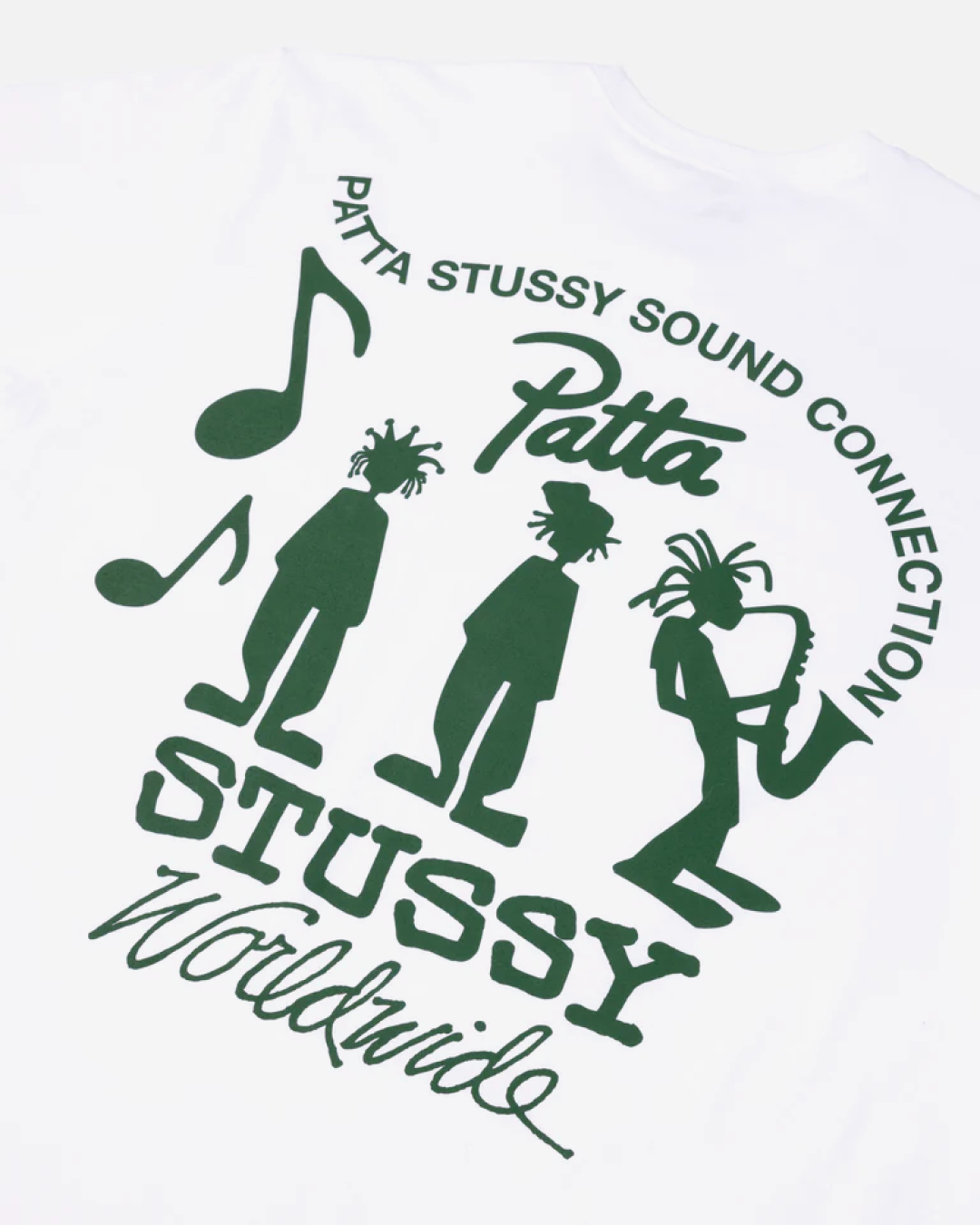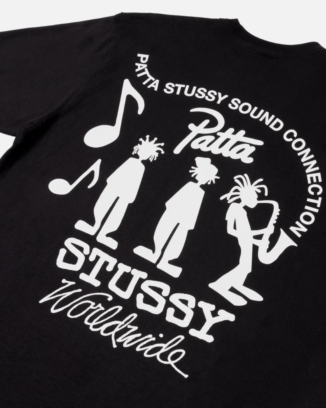 The Patta x Stussy Sound Connection T-shirt is a celebration of two iconic streetwear giants coming together for a collaboration that merges bold style and cultural relevance. Crafted from soft, premium cotton, this limited-edition t-shirt features a classic crewneck silhouette for ultimate comfort and casual appeal.