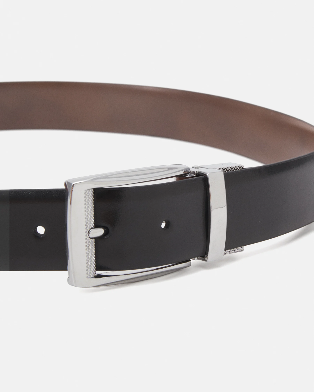 The Pier One Leather Reversible Belt offers versatility and style in one sleek accessory. Crafted from high-quality leather, this belt features a reversible design, allowing you to easily switch between two classic colors to match any outfit.