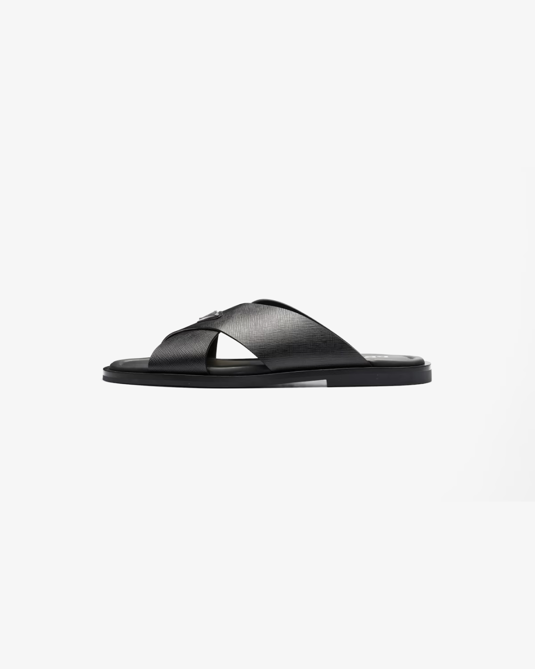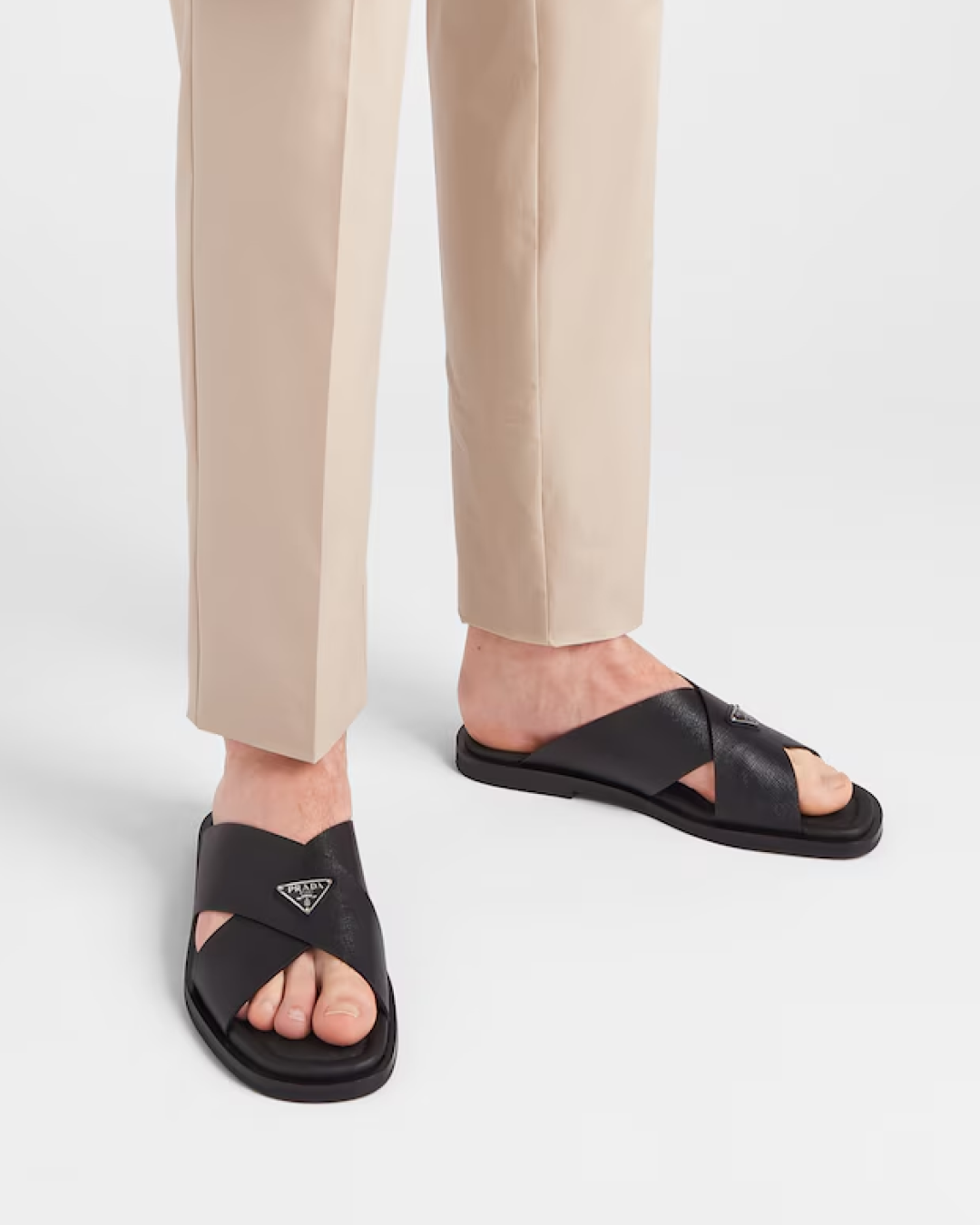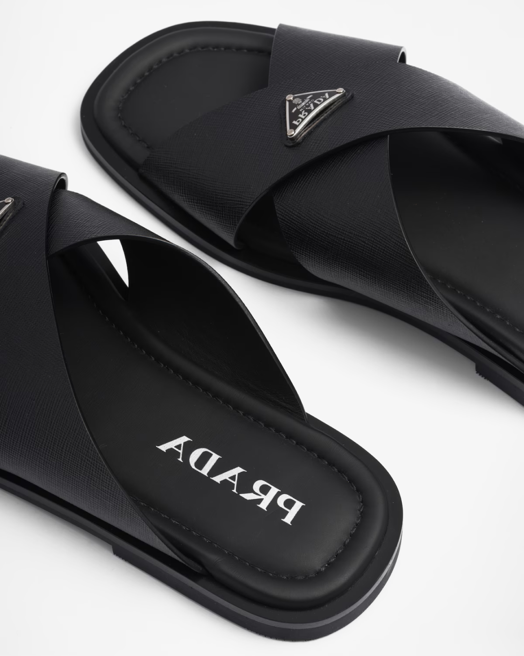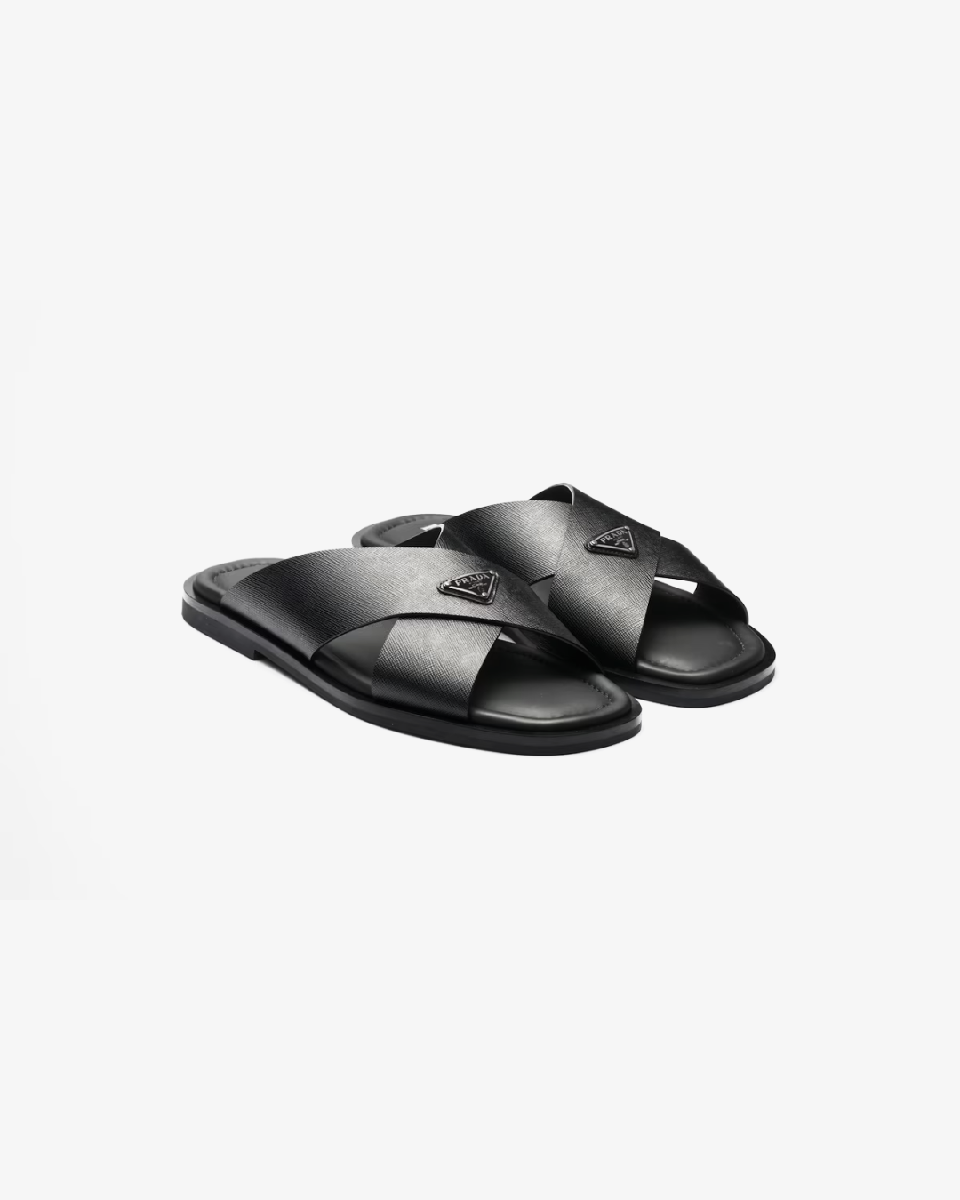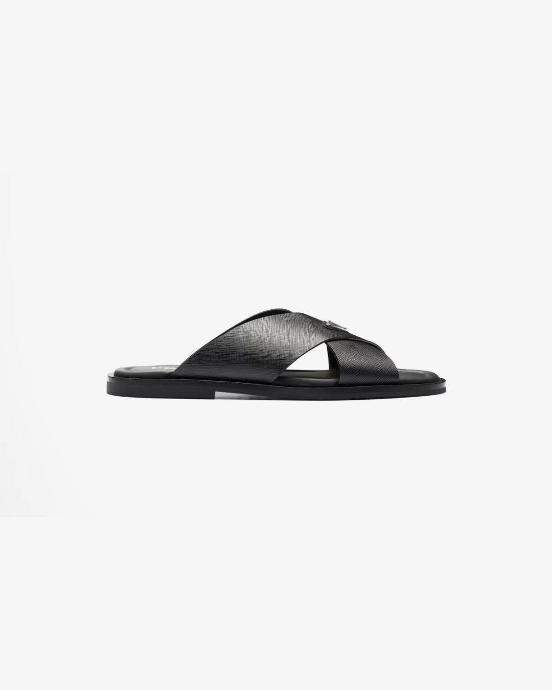 Prada Men's Black Crisscross Logo-Triangle Leather Sandals