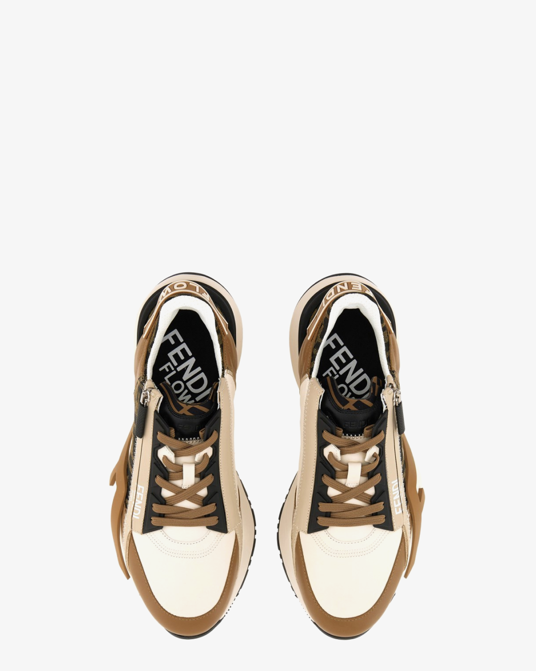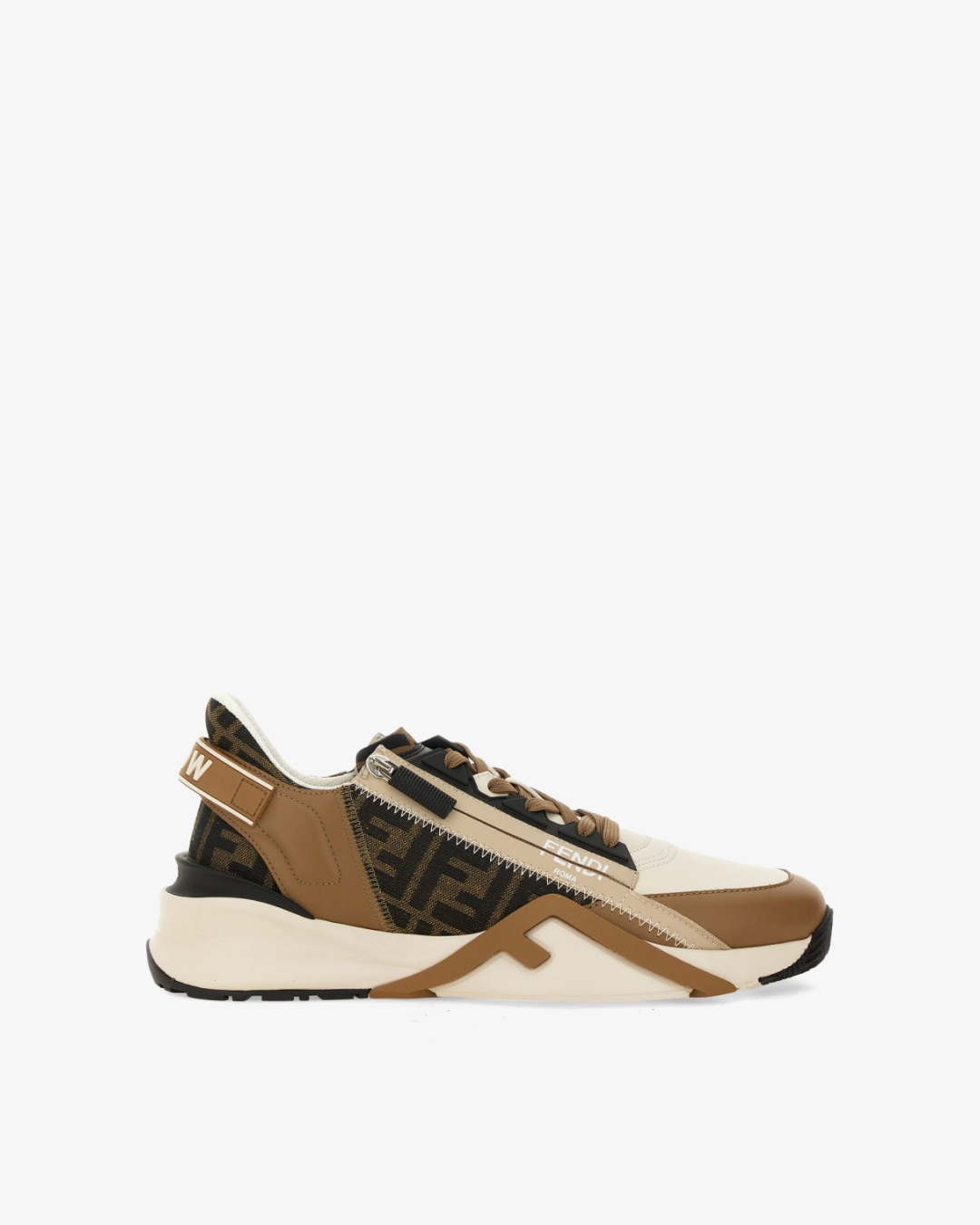 Fendi Flow Sneakers Brown Leather and Brown FF Jacquard