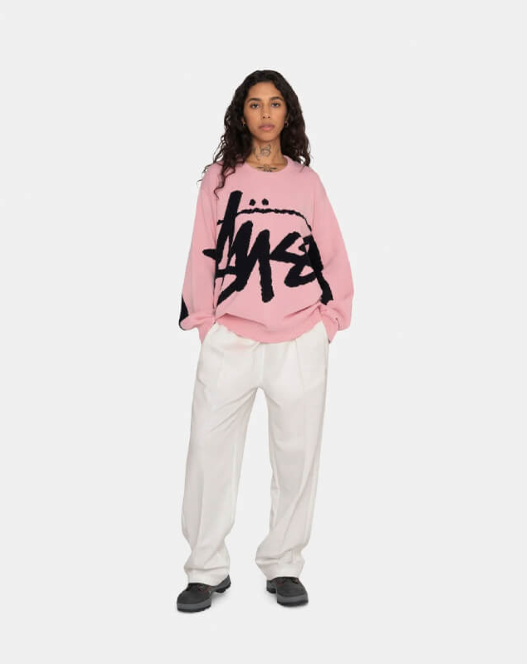 For a laid-back streetwear vibe, pair the Stussy Stock Sweater with baggy jeans and classic sneakers. To create a sleek, layered look, style it with cargo pants and a lightweight puffer jacket. Whether you’re dressing up for the city or keeping it casual, this sweater is a versatile piece that brings both style and comfort to your wardrobe.