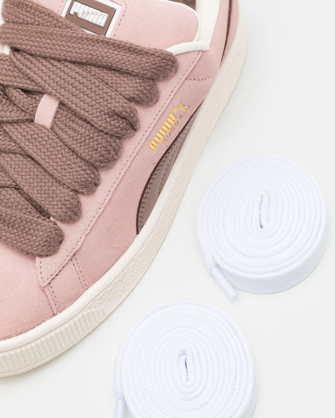 The stitched, brown leather Forms trip matches the shoelaces, while ‘PUMA Suede XL’ is stamped in gold foil lettering for a subtle pop.
