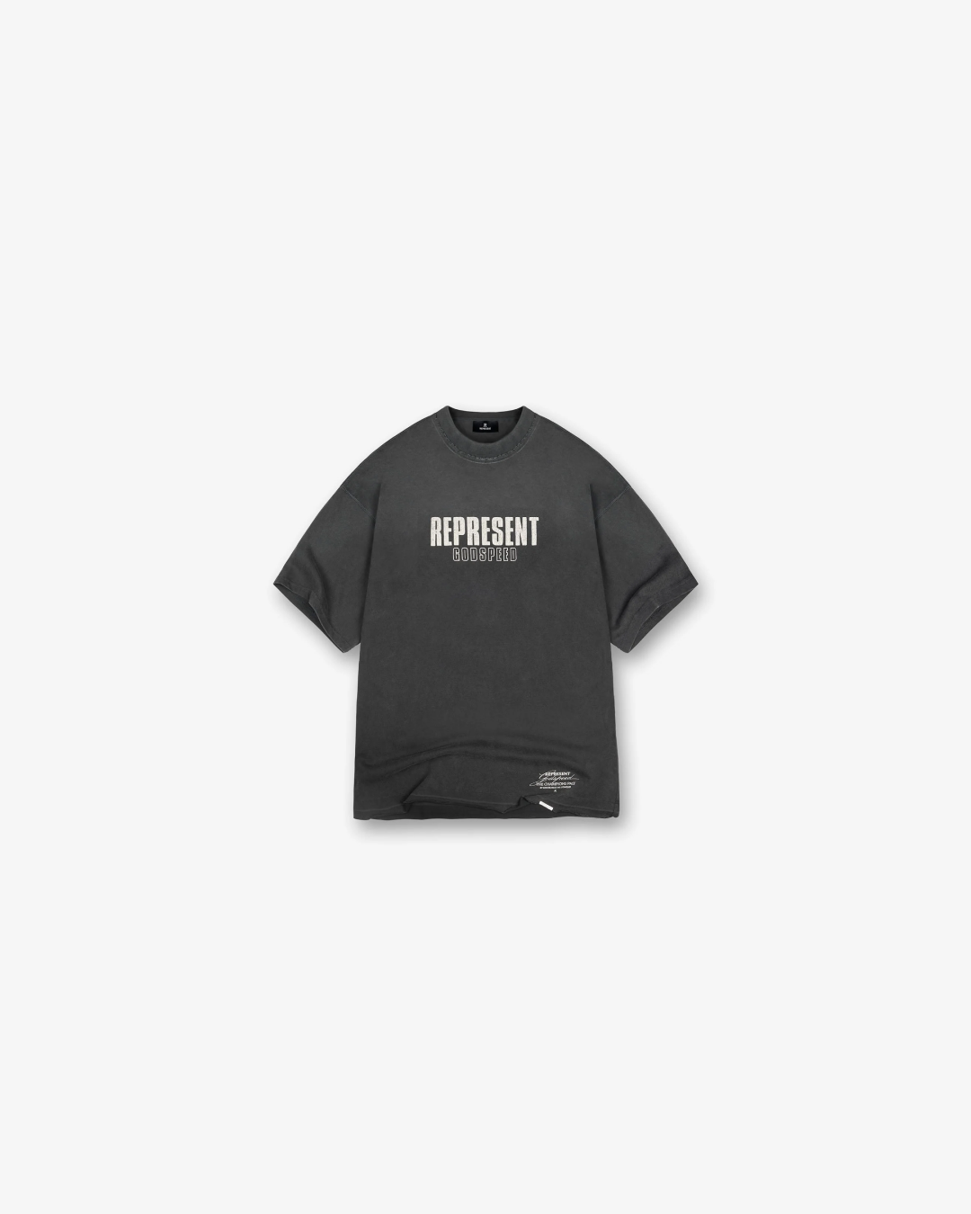 Make a bold statement with the Represent Godspeed Tee, a standout piece that blends graphic storytelling with elevated streetwear aesthetics. Crafted from heavyweight cotton for a premium feel, this tee features Represent’s signature oversized fit, dropped shoulders, and a softly faded vintage wash that adds to its worn-in, effortless vibe.