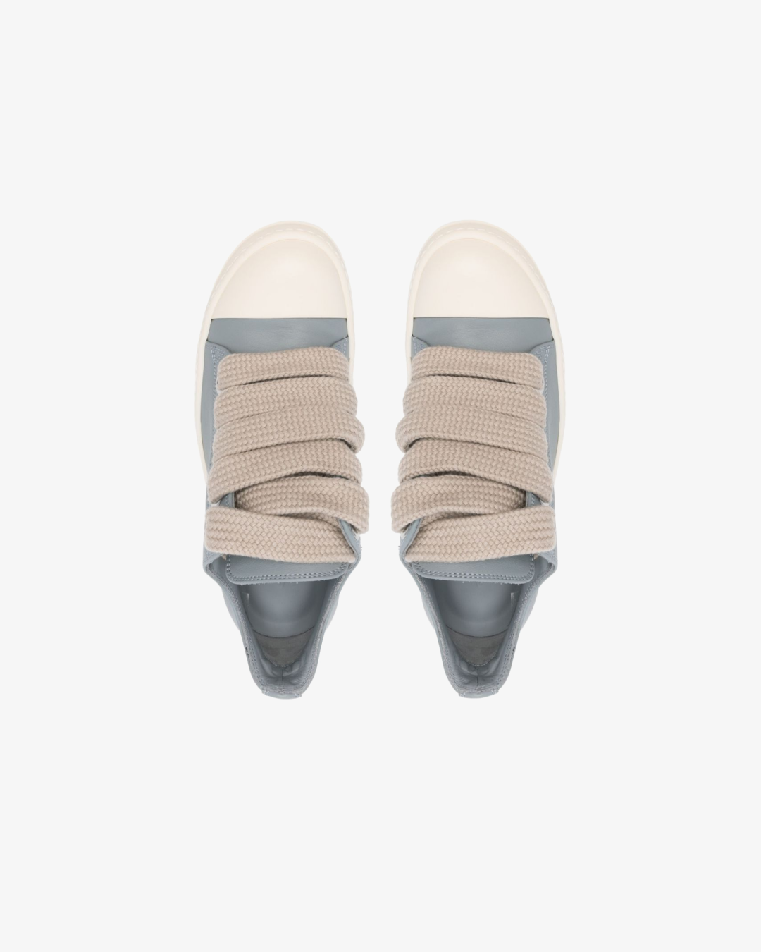 Rick Owens Jumbo Laced Low Top Sneakers in Pale Blue and Milk