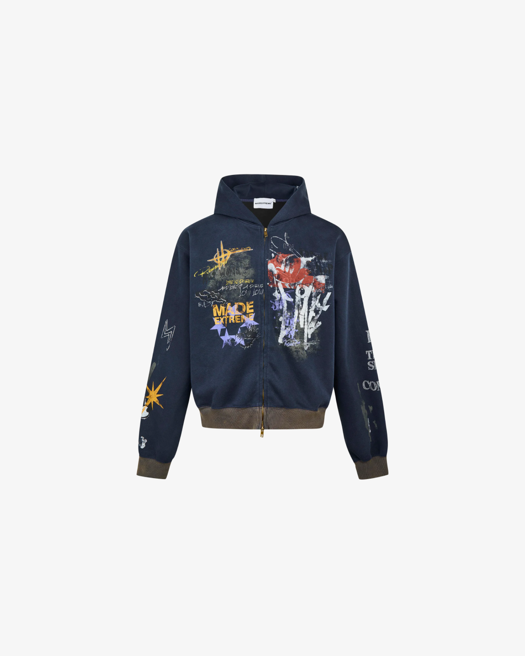 Street Graffiti Print Loose Zip-up Hoodie "Blue"