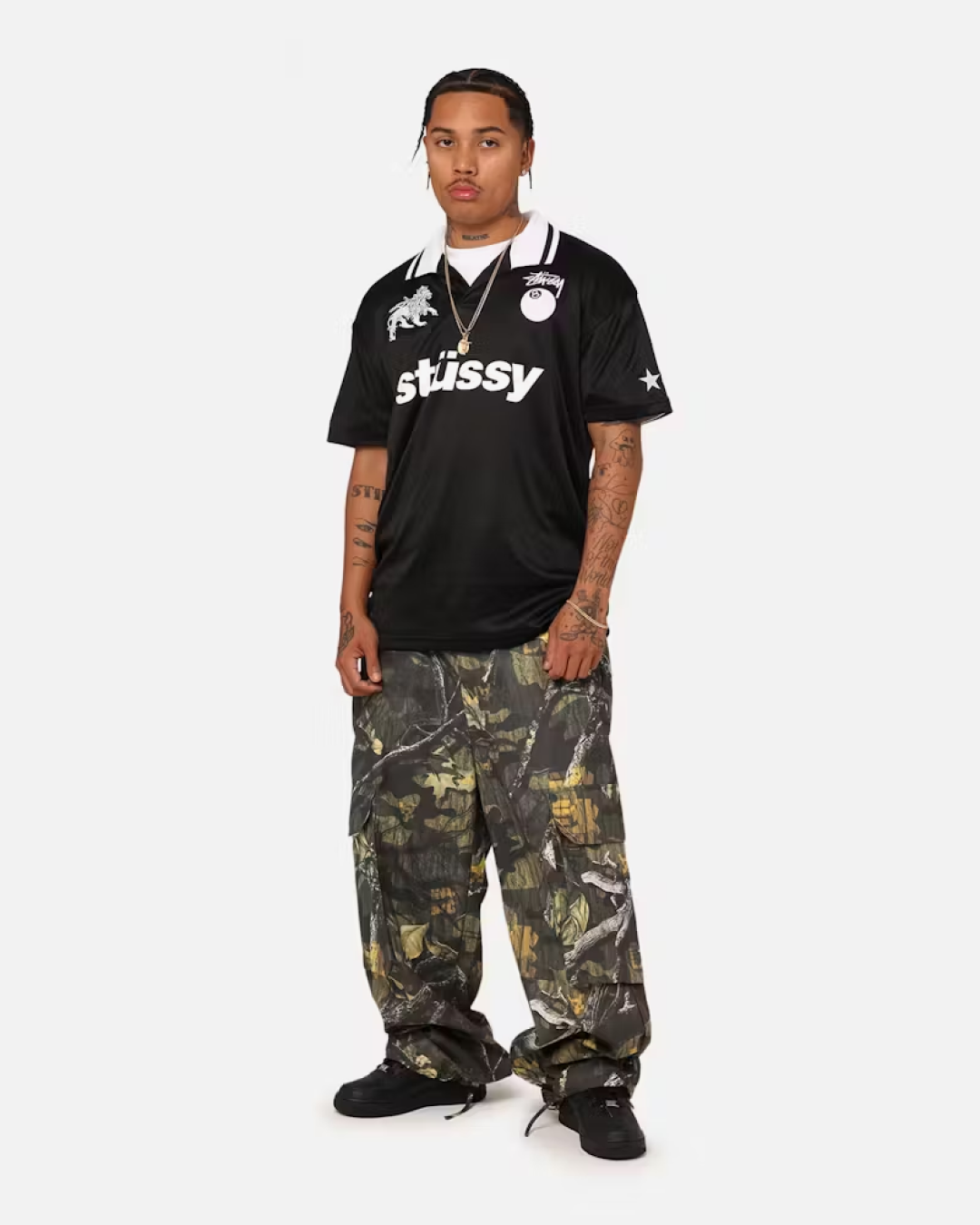 Hit the field or the streets in style with the Football Polo Shirt by Stüssy. This shirt features a mix of embroidered and printed graphics with dropped shoulders for a laidback look and twin-needle stitching to finish it off. Cop yours today at 1807 Retails.