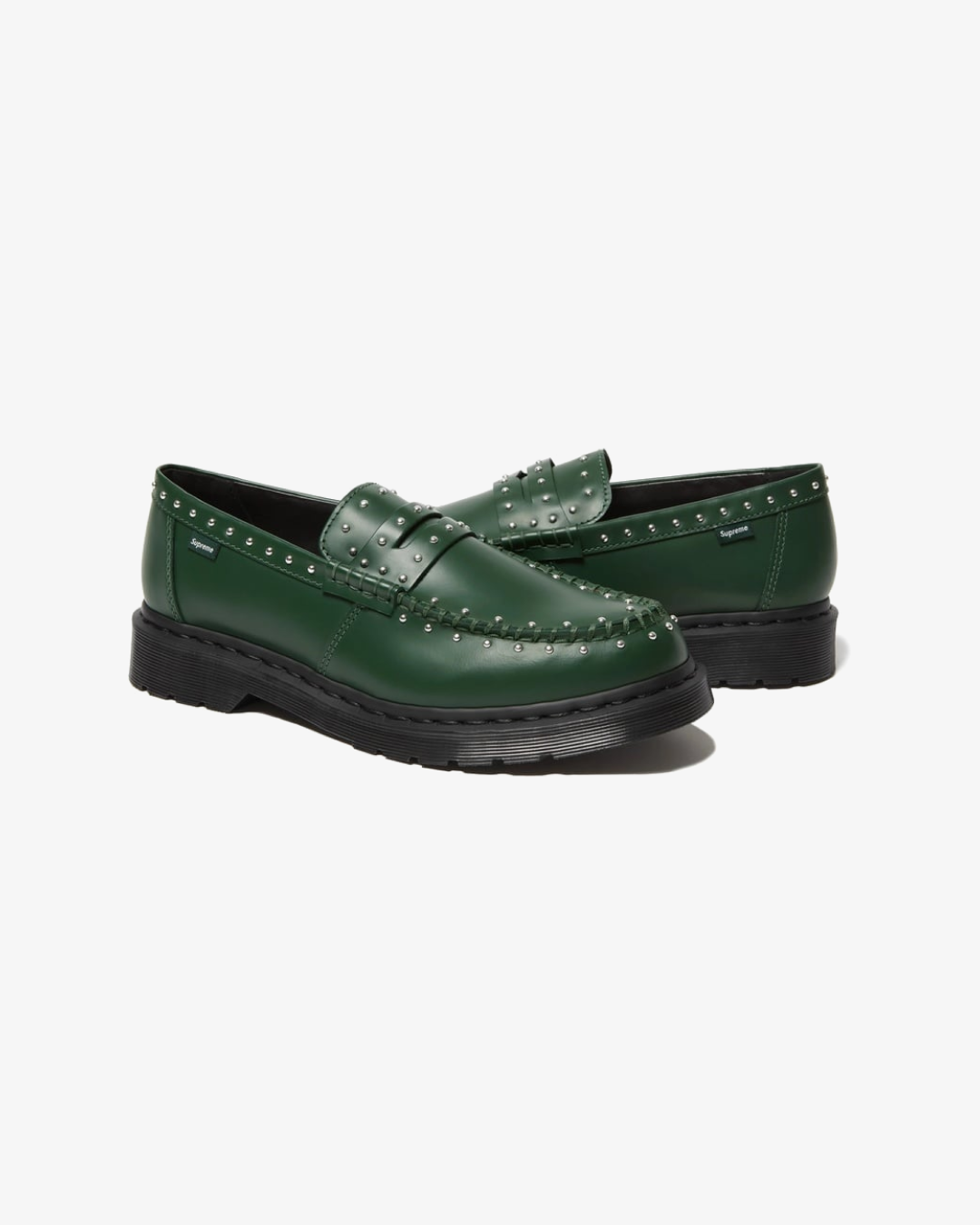 The Supreme SS25 x Dr. Martens Penton Studded Loafers bring together two cultural icons in a bold reinterpretation of classic footwear. Crafted in premium leather, these loafers feature the timeless slip-on silhouette of Dr. Martens elevated with Supreme’s SS25 design edge. The standout detail lies in the studded embellishments across the upper, giving the shoes a rebellious yet sophisticated aesthetic. Available in black, red, and green, each pair embodies a different mood while maintaining the same fearless spirit.