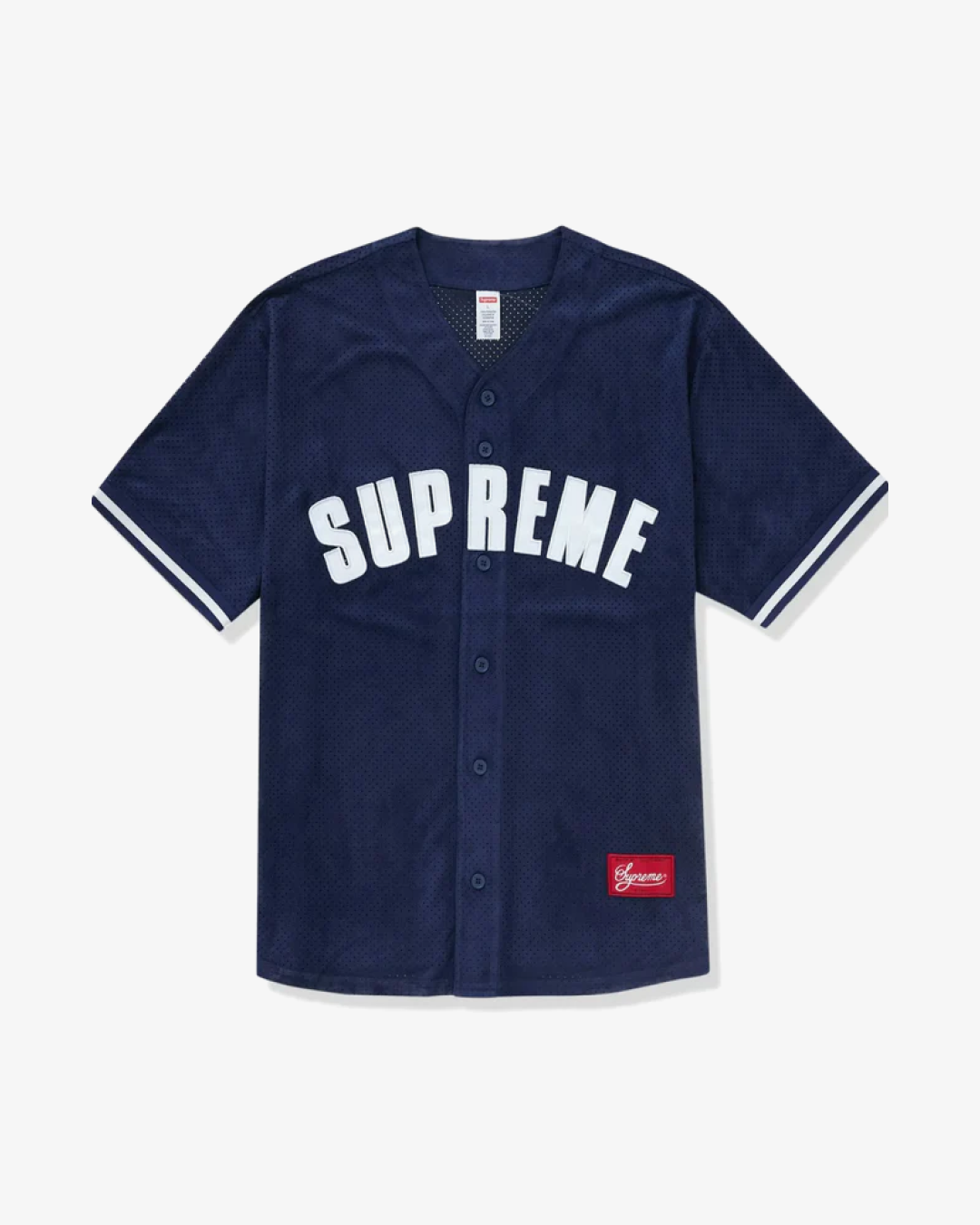 The Supreme Ultrasuede Mesh Baseball Blue Jersey is a stylish piece from Supreme’s streetwear lineup. Crafted from ultrasuede fabric, the jersey combines a luxe texture with the breathability of mesh, making it comfortable and fashionable. The jersey typically features a classic baseball silhouette with button-down closure, showcasing Supreme's signature branding, either embroidered or printed on the front or back. The vibrant blue color adds a sporty yet bold look, perfect for fans of the brand who appreciate both performance-inspired and casual streetwear. Ideal for layering or wearing on its own, it adds a touch of exclusivity to any outfit.