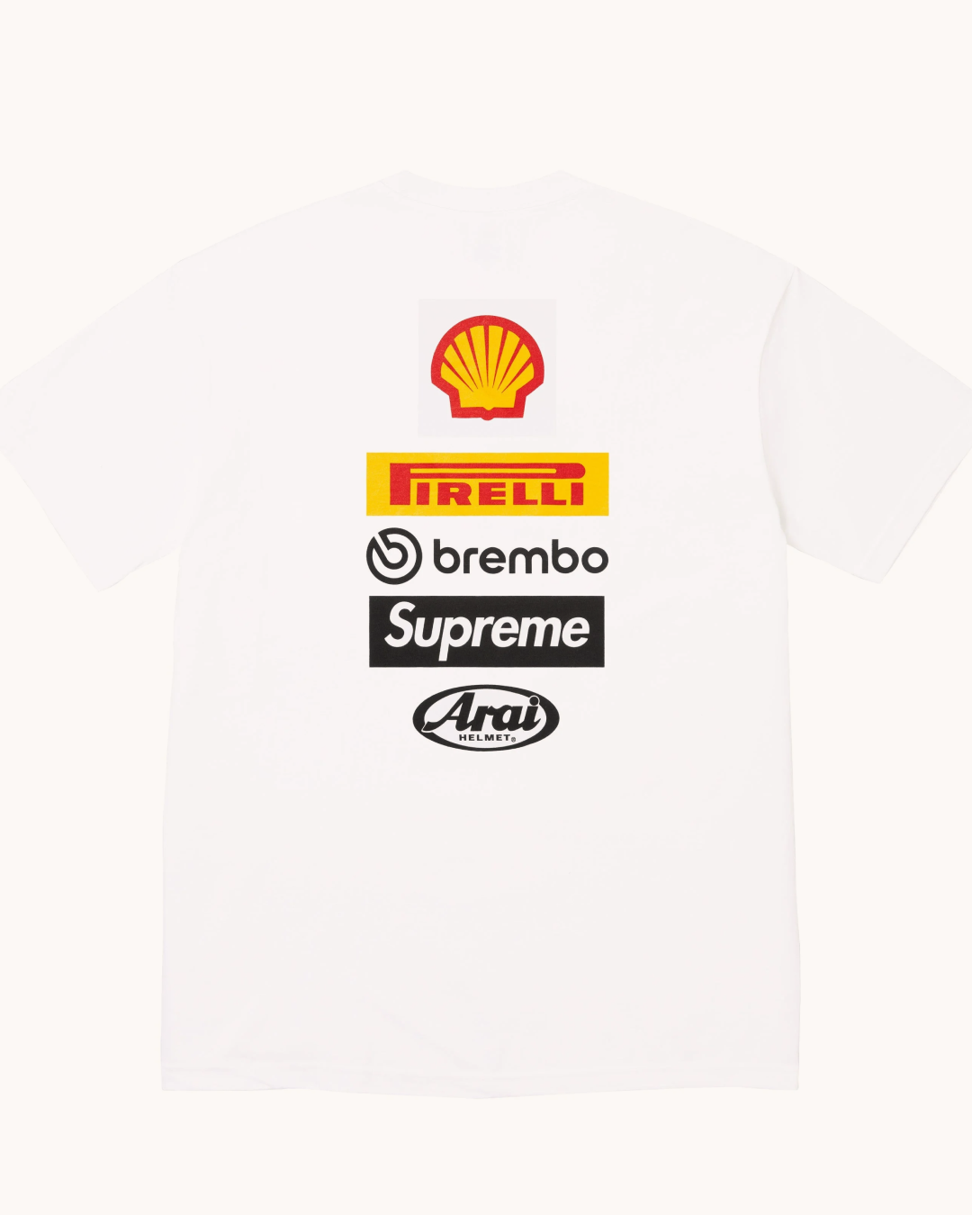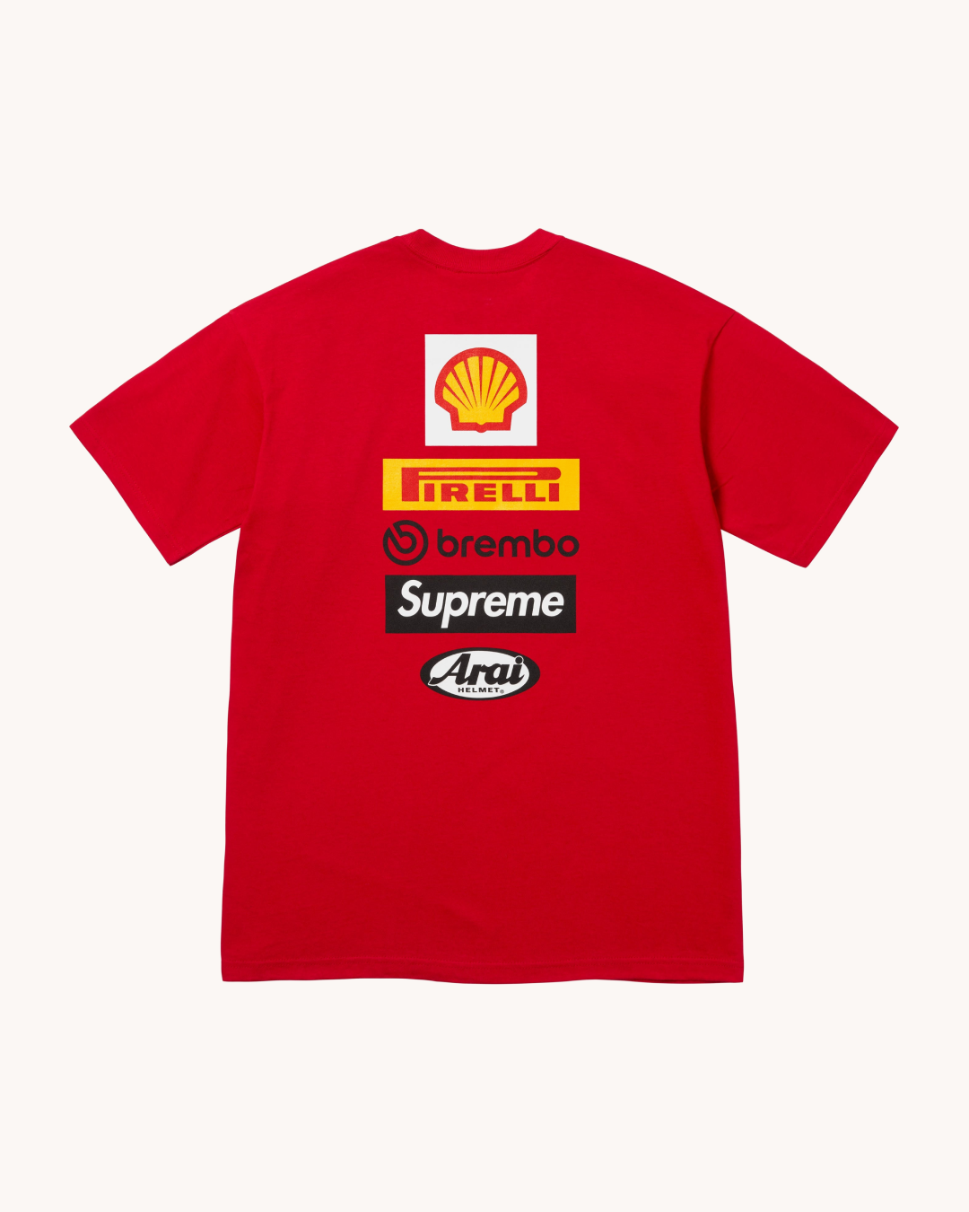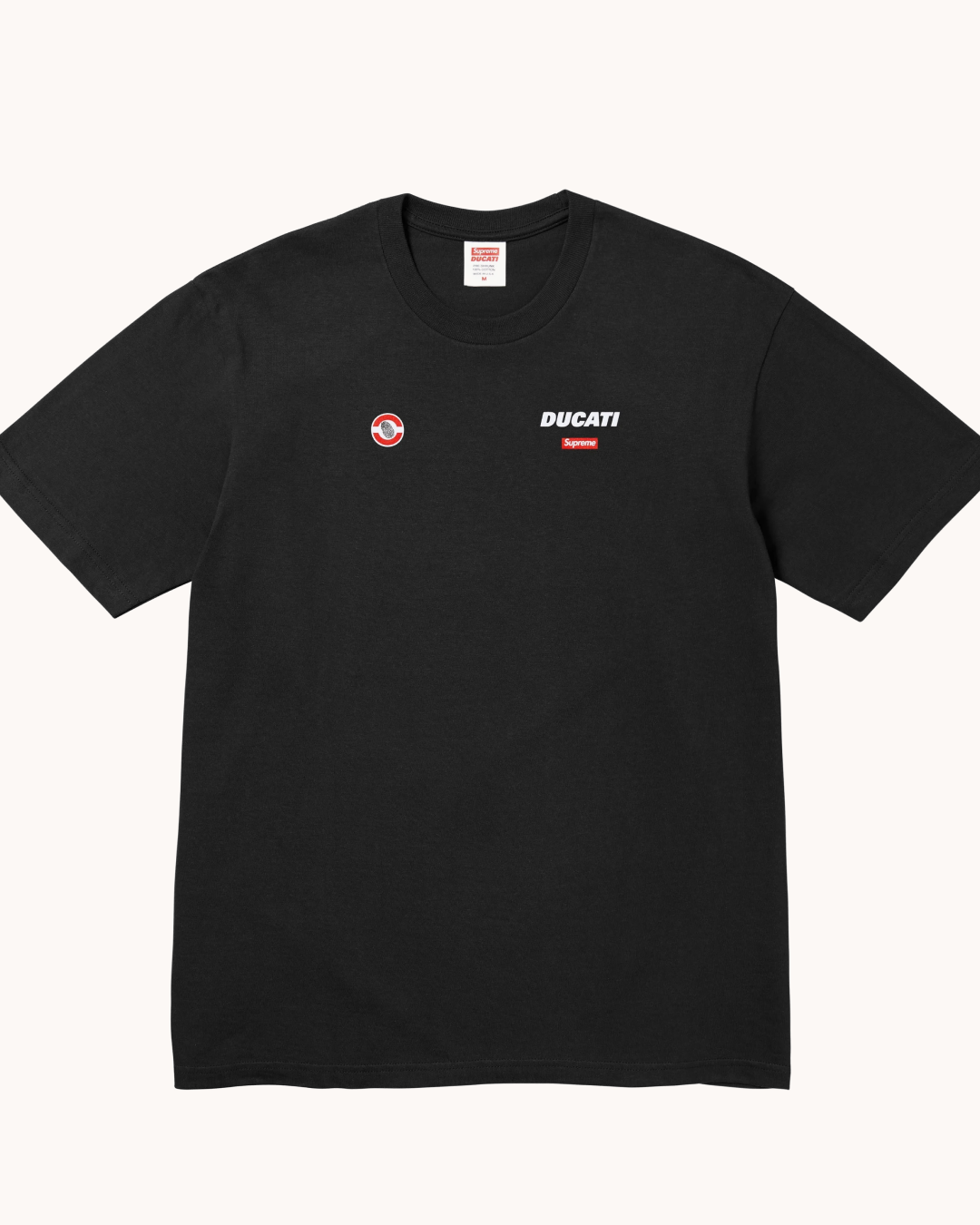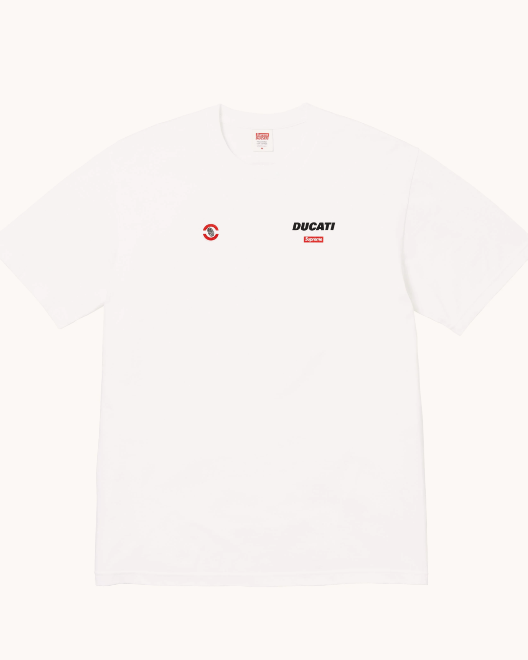 The SUPREME x Ducati Logo T-Shirt is a dynamic blend of streetwear and motorsport heritage, brought to life through this exclusive collaboration. Featuring the iconic Ducati logo prominently displayed on the chest alongside the legendary Supreme branding, this T-shirt is a must-have for fans of both brands.