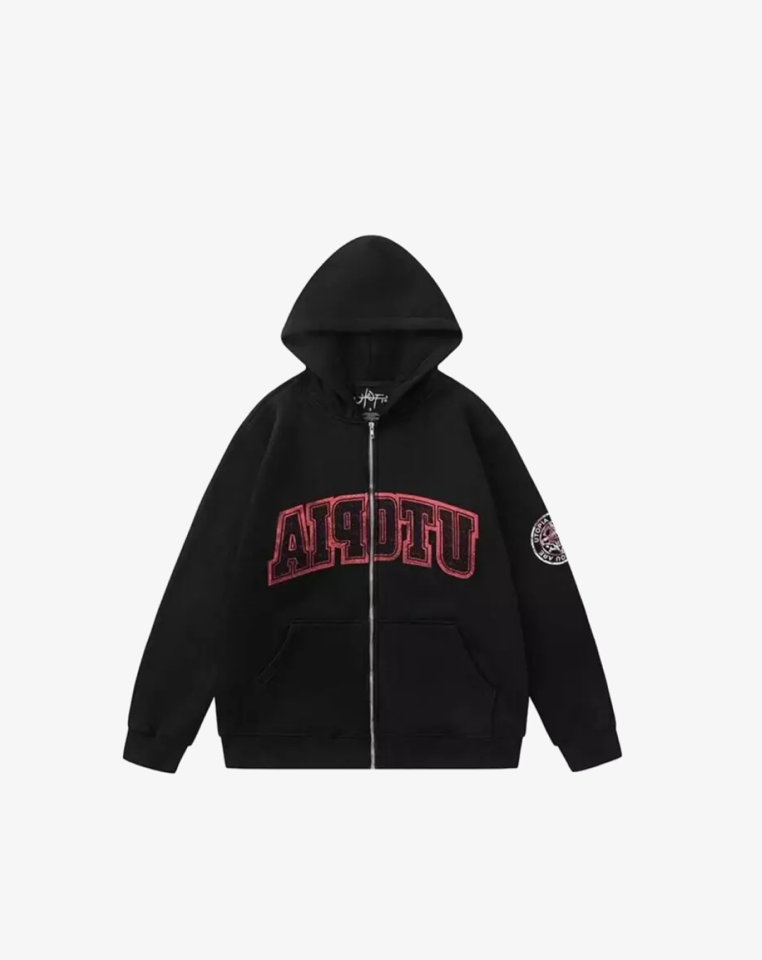 The Utopia Zip-Up Hoodie is the perfect fusion of comfort, style, and streetwear flair. Crafted from a premium cotton-blend fabric, this hoodie offers a soft, cozy feel with a relaxed fit, making it an essential piece for your everyday wardrobe.