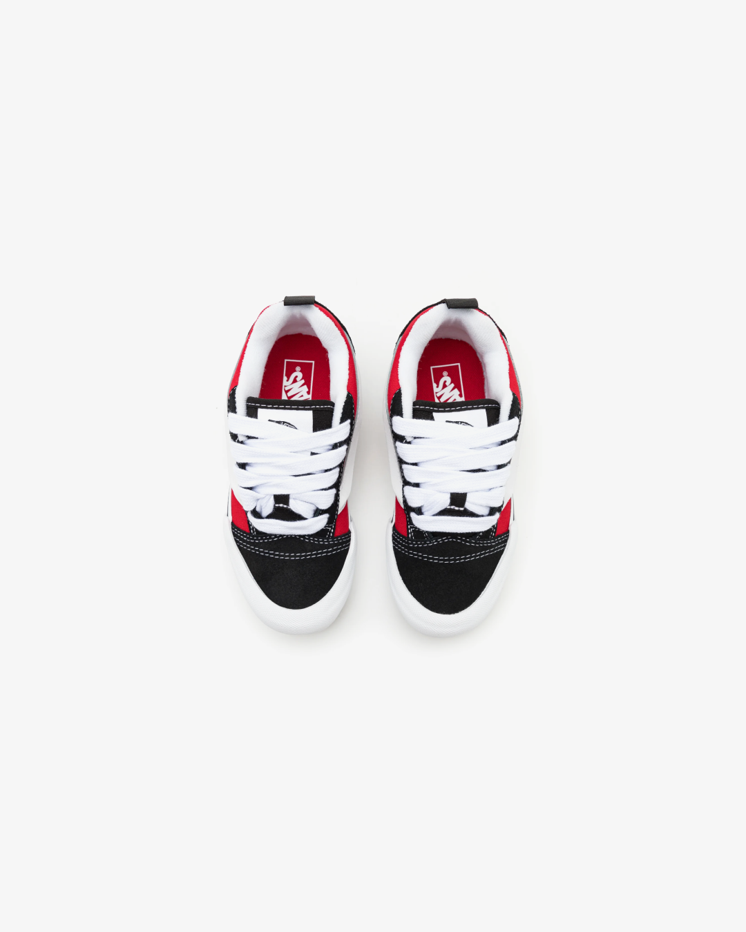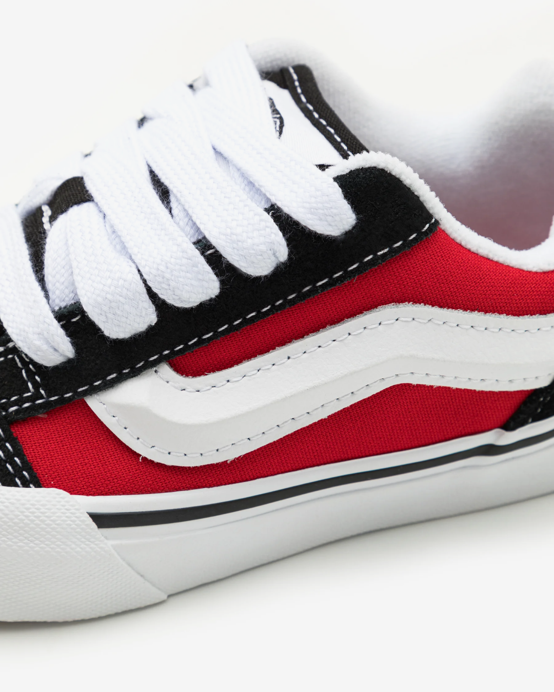 Built for comfort and style, the padded tongue and collar provide all-day support, while the iconic waffle outsole ensures exceptional grip and durability for both skating and casual wear. Perfect for those who want to make a statement, the Vans Knu Skool Black/Red is a timeless mix of skate heritage and modern streetwear flair.
