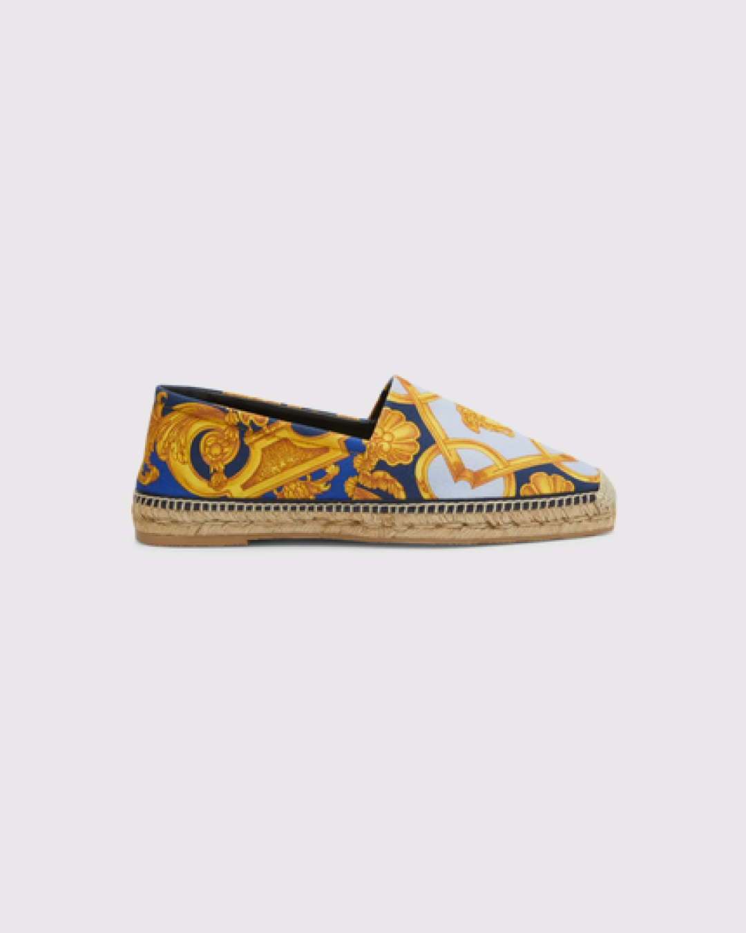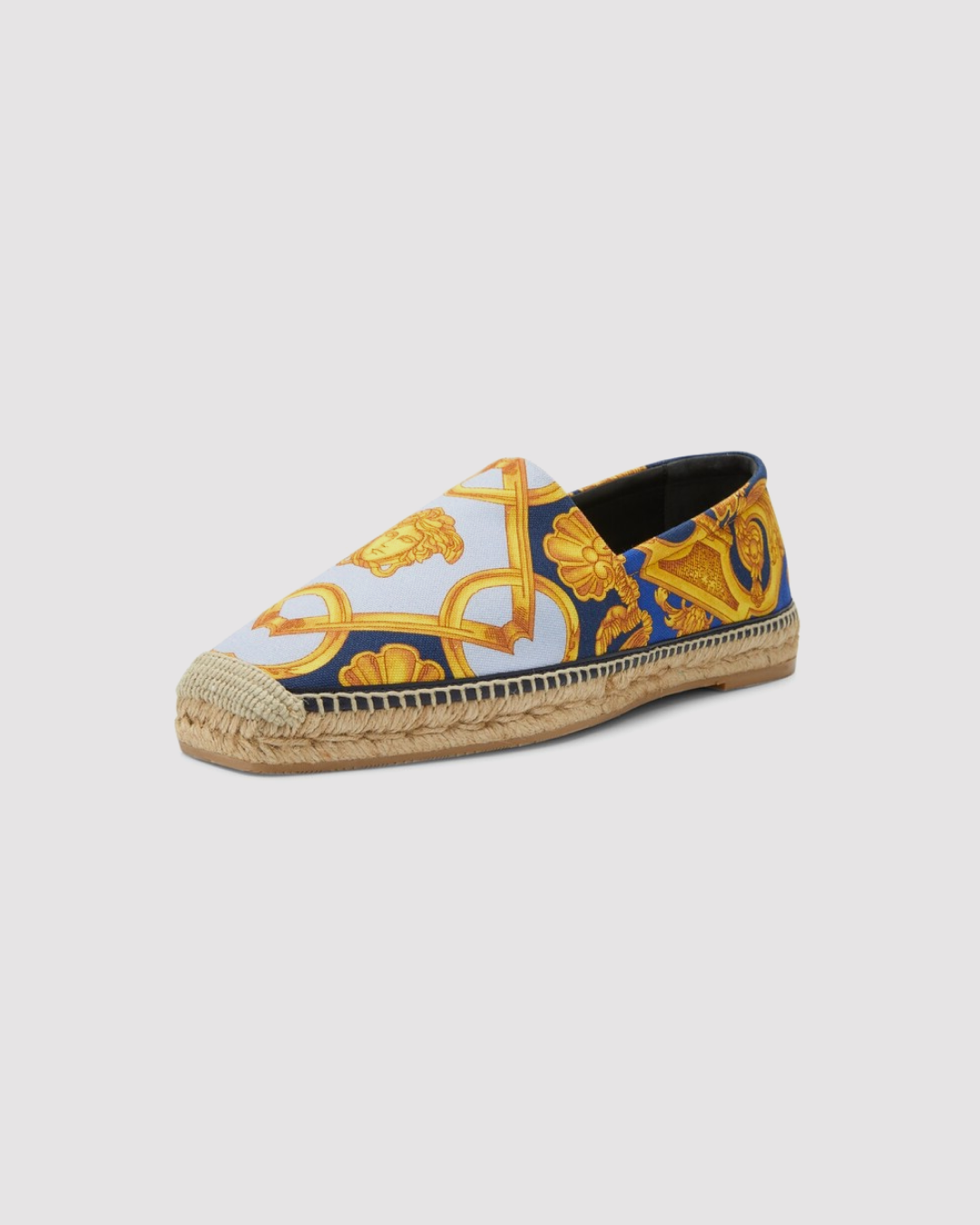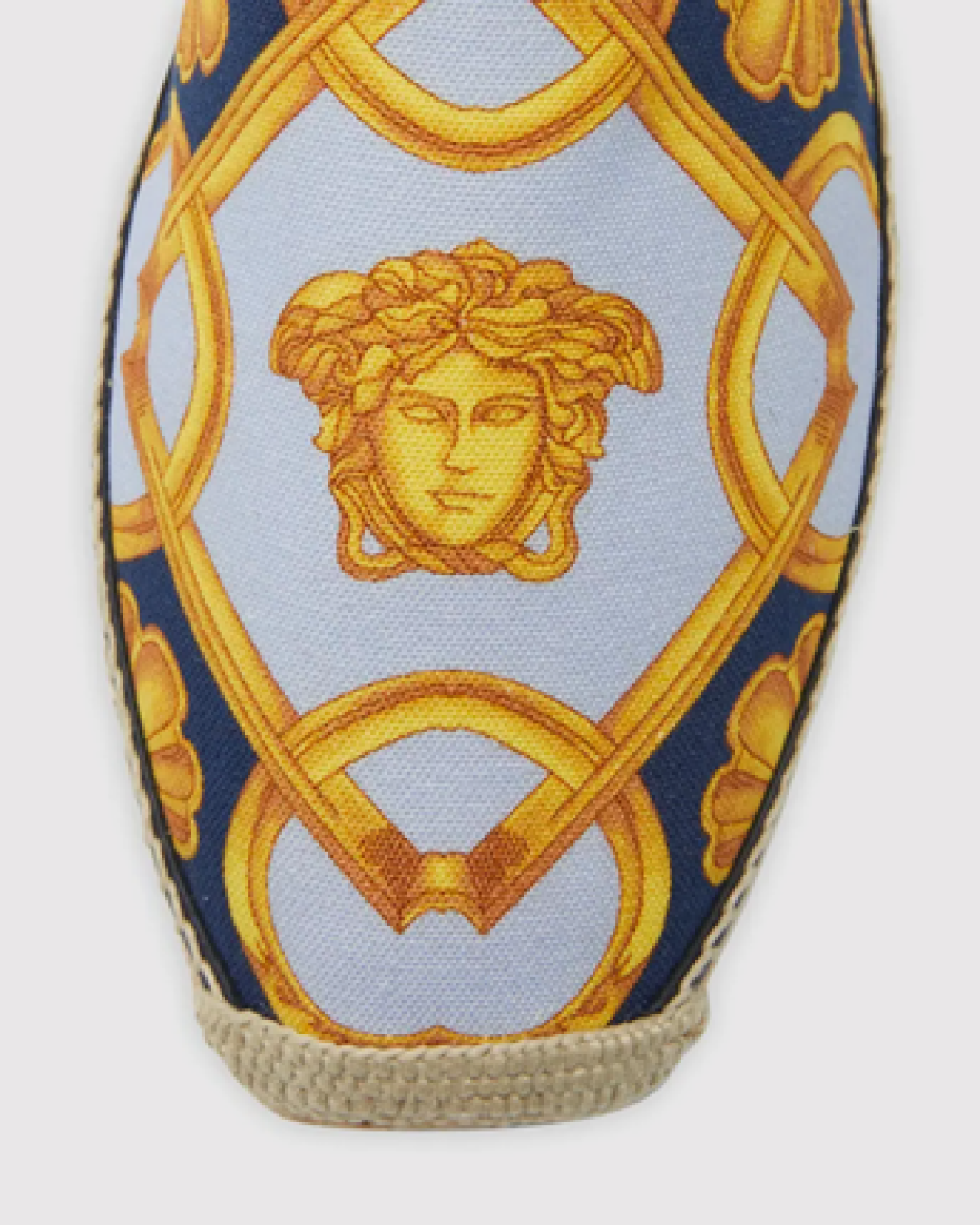 Whether you're strolling through the city or enjoying a coastal getaway, these Versace espadrilles elevate your look with signature Italian luxury.