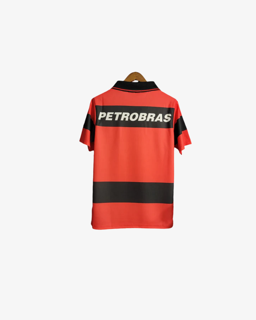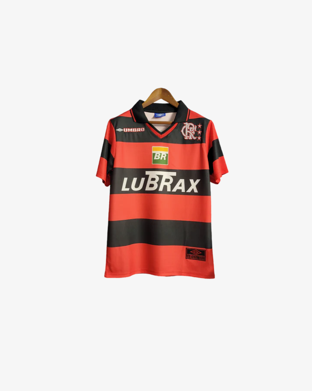 With its bold team colors and CRF club crest, this polo shirt embodies the passion and spirit of Flamengo football from the golden era. The Lubrax sponsor logo emblazoned across the front adds an authentic touch, making it a collector’s piece for fans of vintage football apparel.