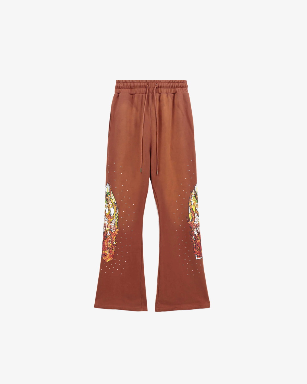 Who Decides War Flare Pants are a statement piece known for their bold, avant-garde design. Created by the New York-based brand Who Decides War, these pants often feature distinctive flared legs and intricate detailing, such as embroidered patches, distressing, or vibrant prints. The brand is recognized for its focus on sustainability and craftsmanship, blending streetwear aesthetics with high-fashion elements.