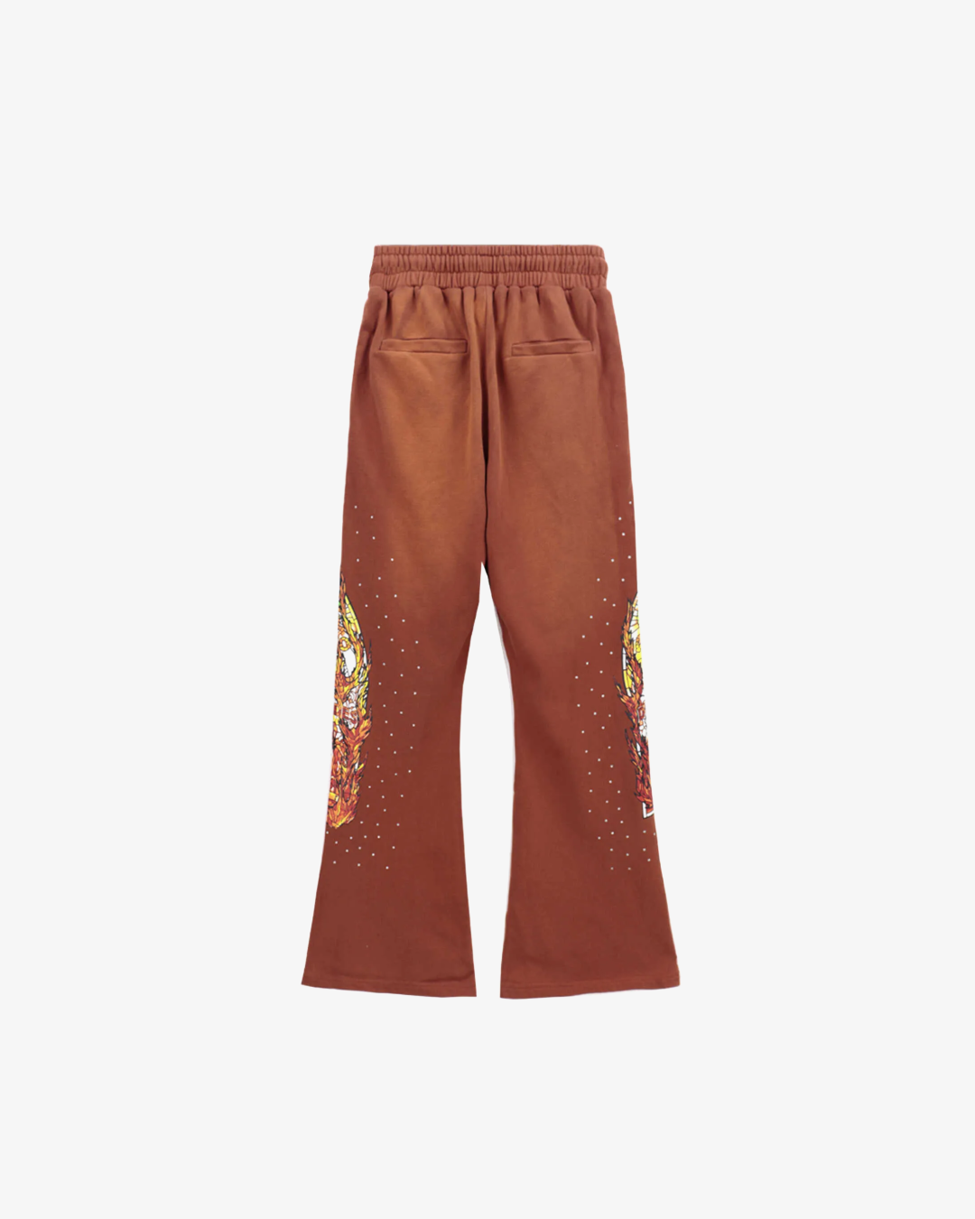The flare silhouette of these pants offers a throwback to 1970s styles, while the modern embellishments and unique fabric treatments make them a standout in contemporary fashion. Perfect for pairing with oversized tops or tailored jackets, these pants add an edge to any outfit.