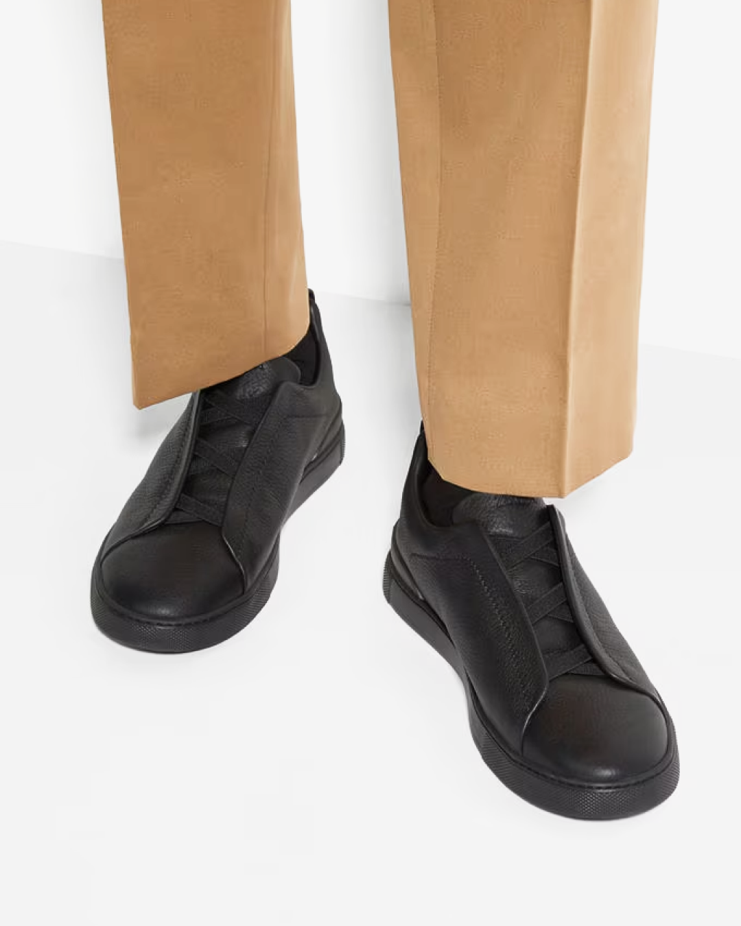 The Zegna Deerskin Triple Stitch™ Sneakers are a luxurious and versatile choice for refined casual style. Made from premium deerskin, these sneakers feature Zegna's iconic Triple Stitch™ detailing, which not only adds a unique aesthetic but also enhances the shoe’s flexibility and comfort. The slip-on design makes them effortlessly wearable, while the soft leather interior ensures a comfortable fit for all-day wear. With a minimalist silhouette, these sneakers can elevate any outfit, from smart-casual looks to more relaxed ensembles. Perfect for those who value craftsmanship and understated luxury.
